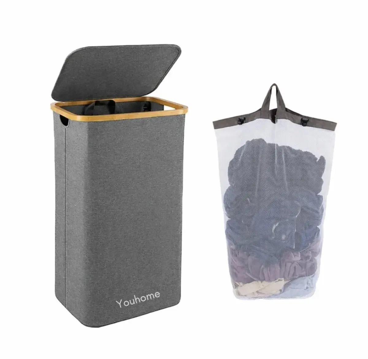 Cesto Ropa Sucia Youhome Con Tapa Bambú - Canasto Lavadero Bolsa Interior Desmontable Lavable Asas Laterales