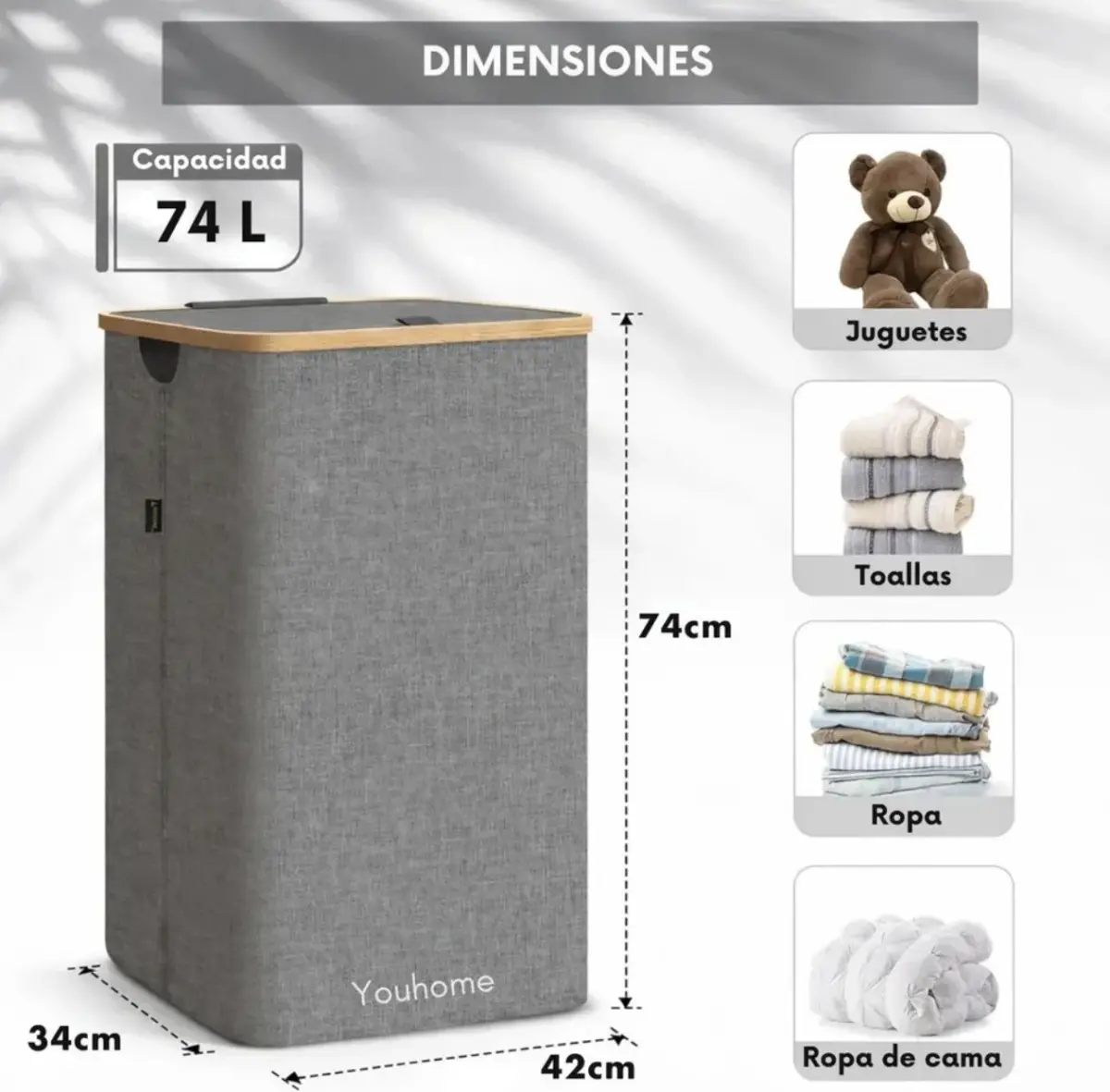 Cesto organizador Youhome de gran capacidad ideal para ropa, toallas, frazadas, juguetes y mucho más. Diseño moderno, estructura firme y bolsa interior desmontable que facilita el lavado y el traslado de la ropa.