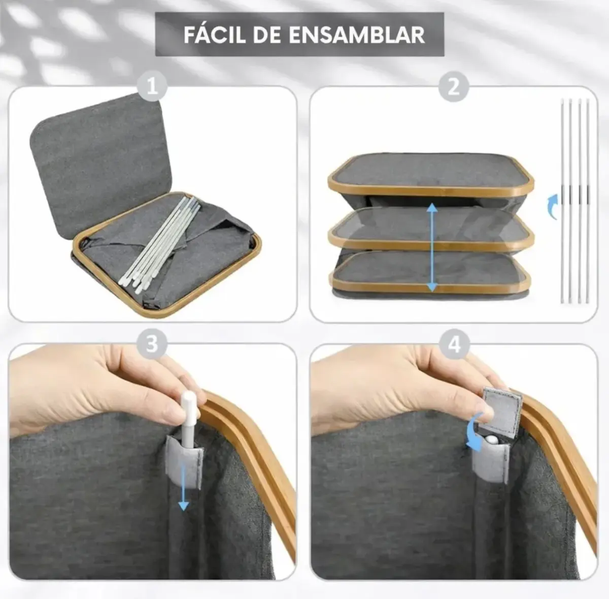 • Material: Tela Oxford resistente + aro superior de bambú natural