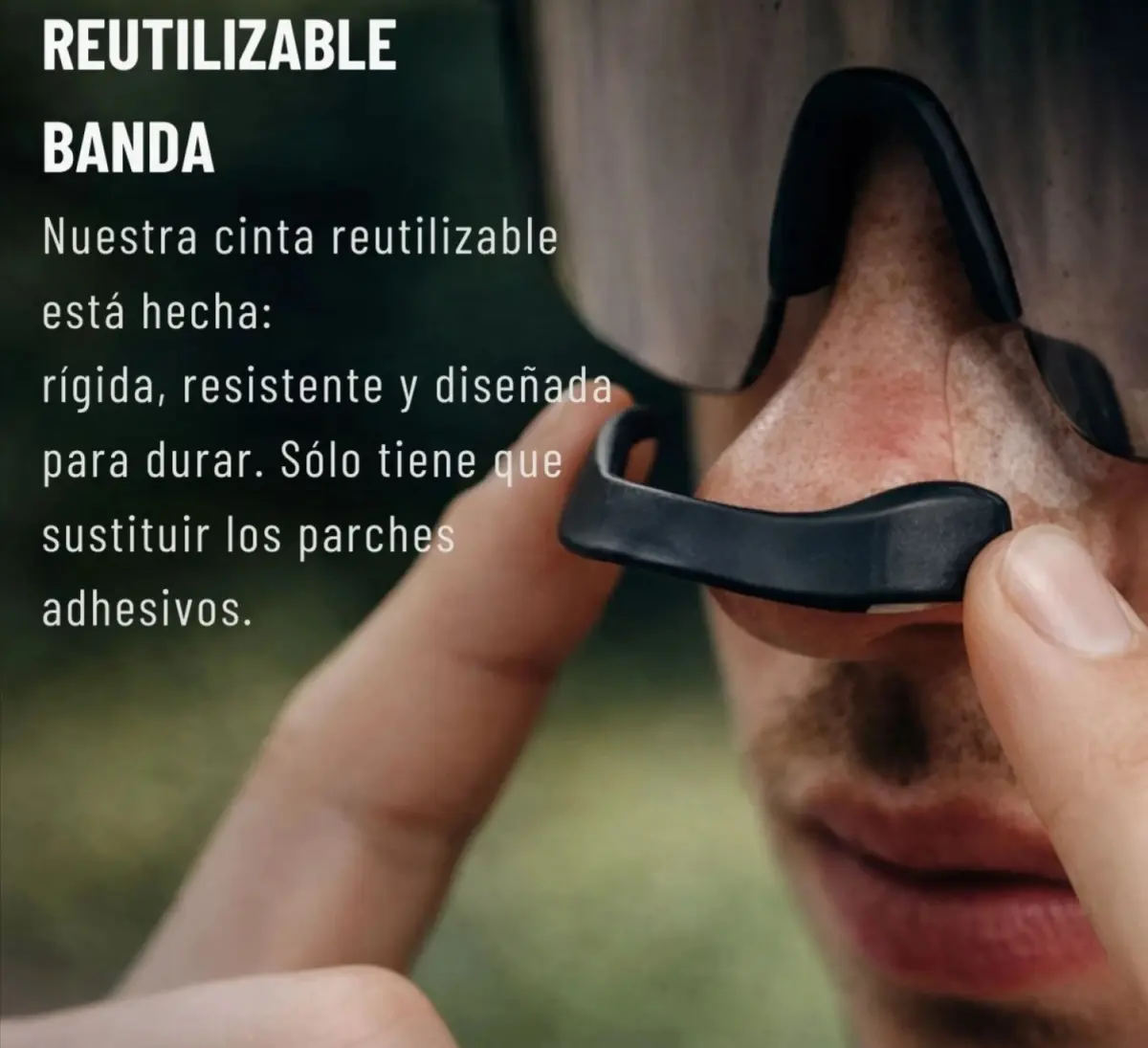 Acción de apertura nasal externa: ayuda a ampliar el paso de aire sin introducir piezas dentro de la nariz.