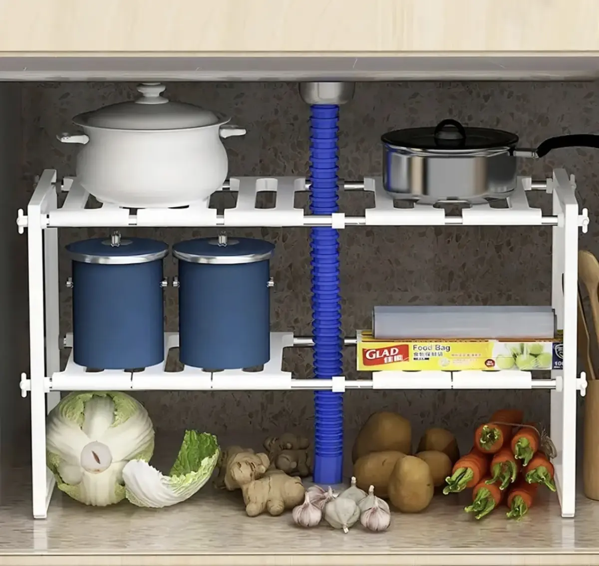 Este organizador está diseñado no solo para ser funcional, sino también adaptable a cualquier tipo de espacio. Con sus módulos ajustables, puedes personalizarlo para que se acomode perfectamente a cualquier diseño de cocina o área de almacenamiento, evitando caños y estructuras fijas. Además, la altura regulable te permite ajustarlo según tus necesidades, haciendo que sea una solución realmente versátil para optimizar el espacio.
