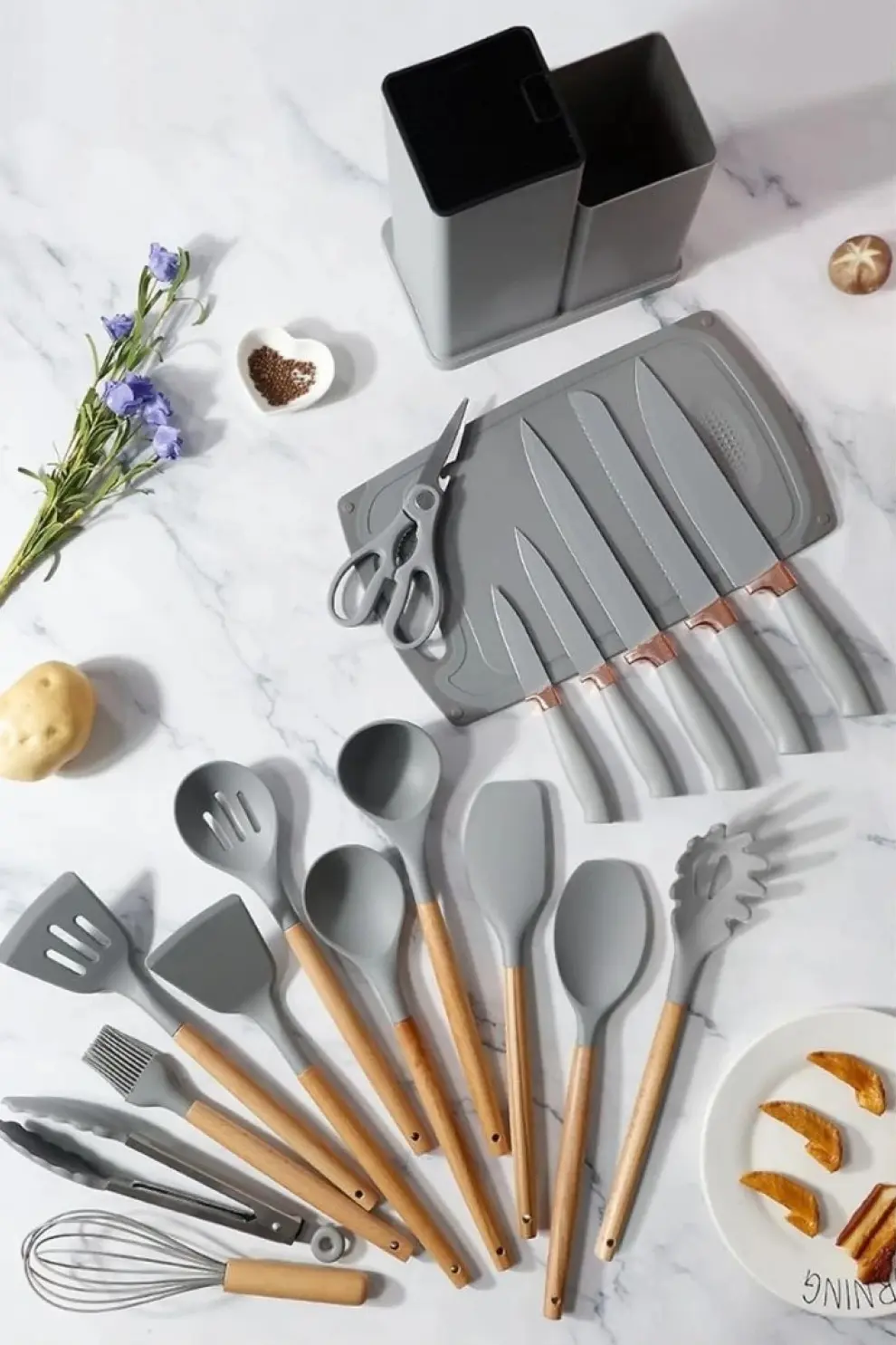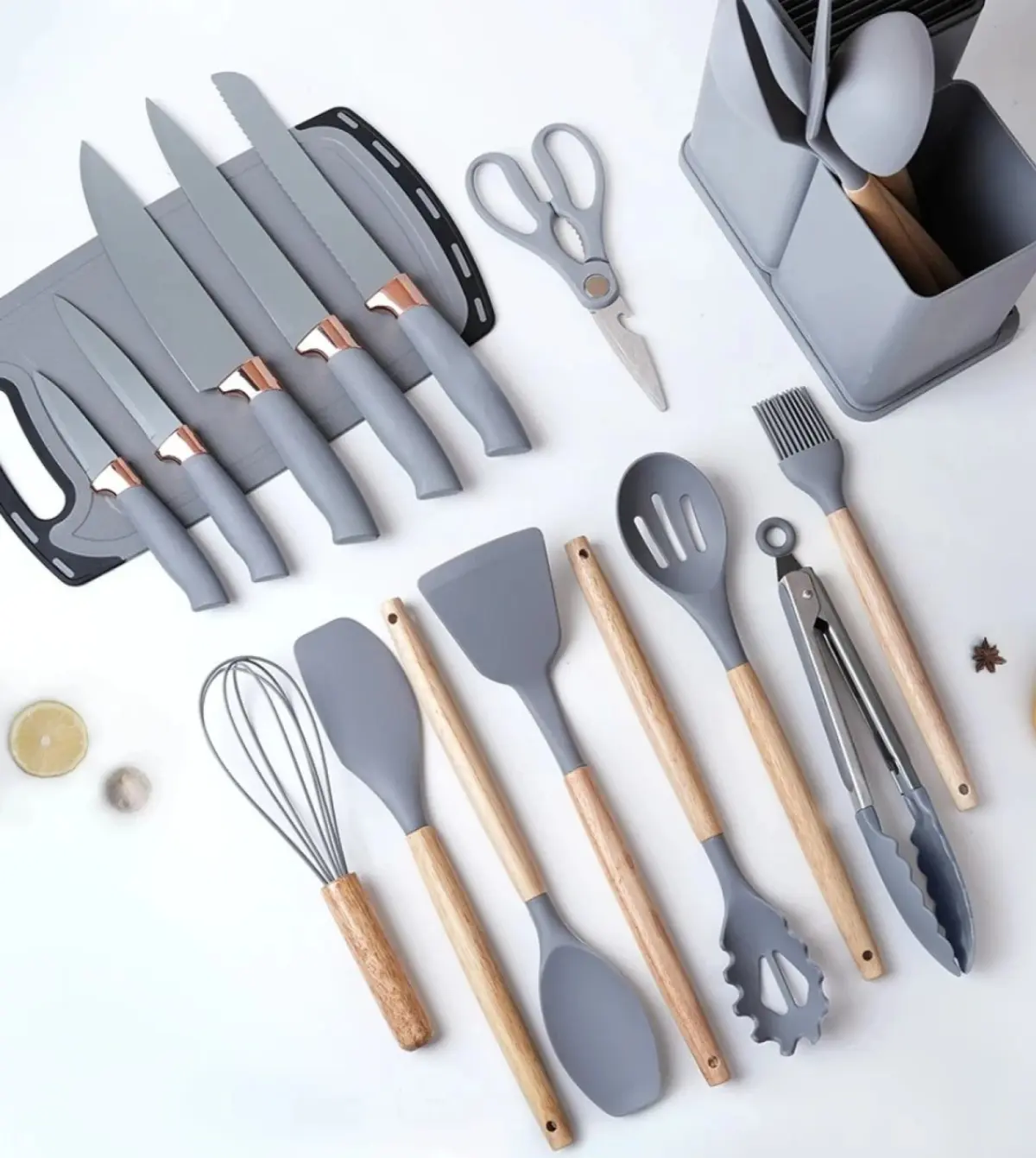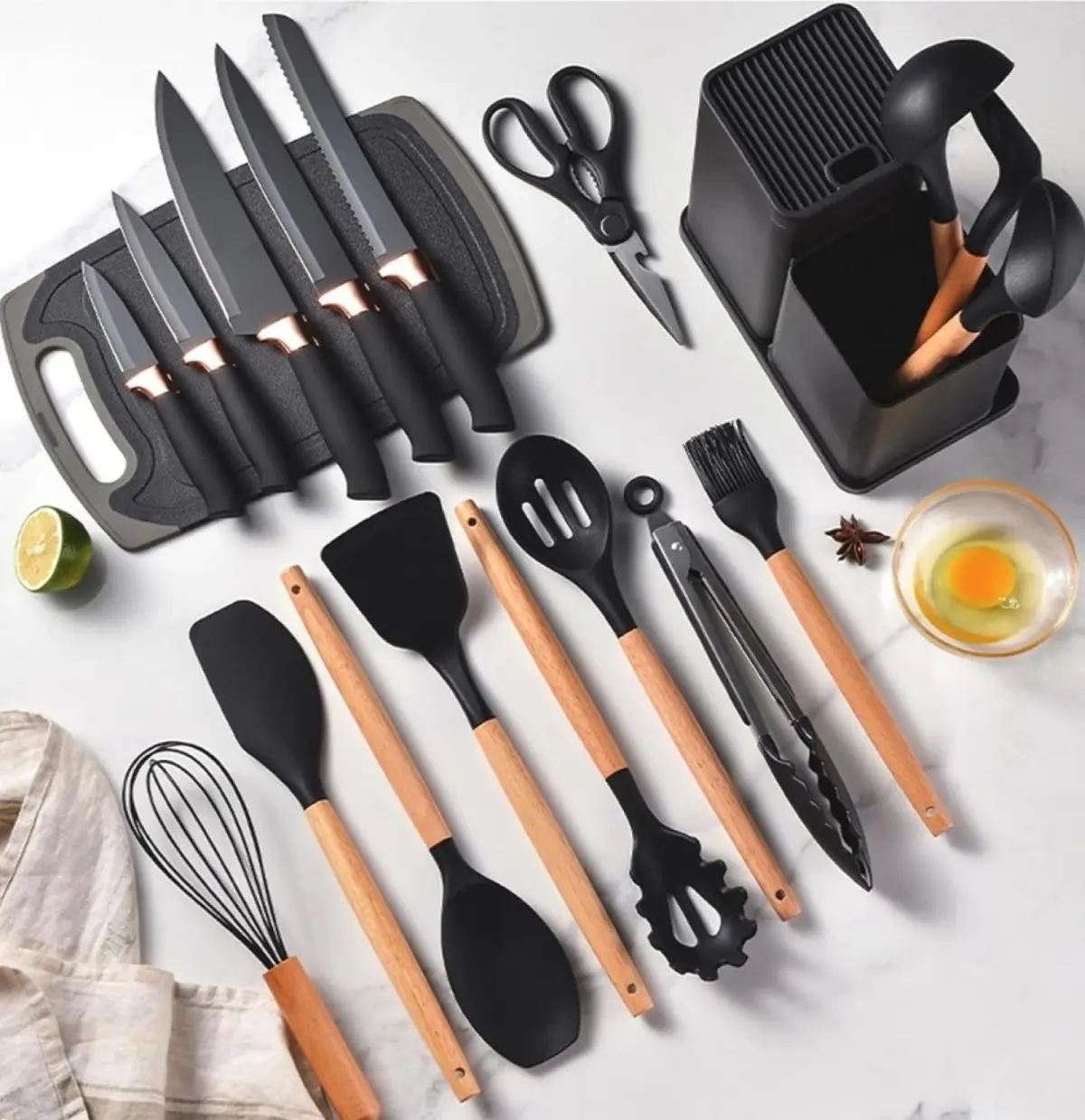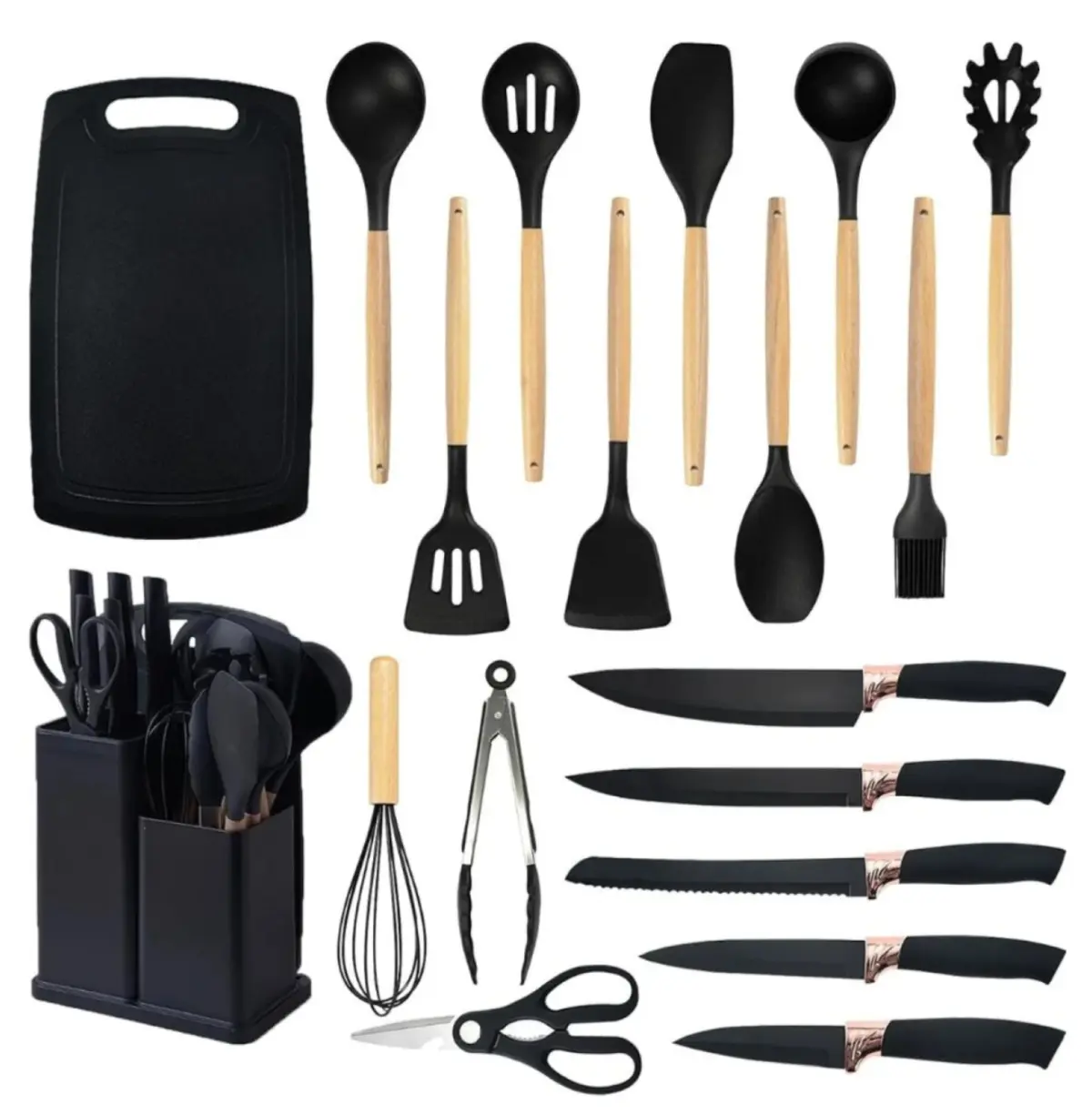 Este completo set de cocina de 19 piezas es perfecto para los amantes de la cocina que buscan funcionalidad, calidad y organización en un solo paquete. Con un diseño elegante y resistente, este set incluye todo lo necesario para preparar cualquier tipo de plato, desde los más simples hasta los más elaborados.