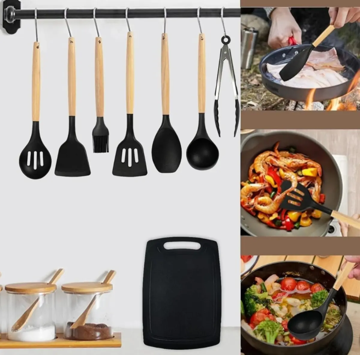 - Materiales de alta calidad: Los utensilios están fabricados con acero inoxidable resistente y silicona de grado alimenticio, garantizando durabilidad y seguridad en la preparación de alimentos.